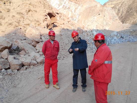 2015年11月27日,青海物產集團副總經理徐涌,安全員劉鐵金對青海物產爆破技術服務有限公司大力加山項目部,民小公路項目部進行了安全檢查,青海物產爆破技術服務有限公司安全總監解統科陪同檢查。
