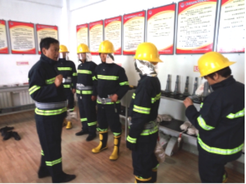 現場演示微型消防站防護用具的穿戴及使用方法,進一步細化了滅火戰斗組、救援組各所屬人員的責任分工,并對各類防護、逃生、破拆工具的實際用途做了詳細的講解說明。