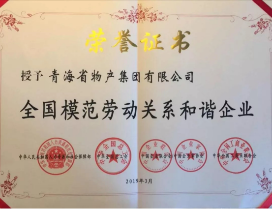 由青海省人力資源和社會保障廳、青海省總工會、青海省企業(yè)聯(lián)合會/企業(yè)家協(xié)會、青海省工商業(yè)聯(lián)合會共同推薦申報,青海省物產(chǎn)集團有限公司、青海互助青稞酒股份有限公司、正平路橋建設(shè)股份有限公司榮獲全國模范勞動關(guān)系和諧企業(yè)光榮稱號,西寧經(jīng)濟技術(shù)開發(fā)區(qū)東川工業(yè)園區(qū)榮獲全國模范勞動關(guān)系和諧工業(yè)園區(qū)光榮稱號,受到了國家人力資源和社會保障部、中華全國總工會、中國企聯(lián)、全國工商聯(lián)的隆重表彰。