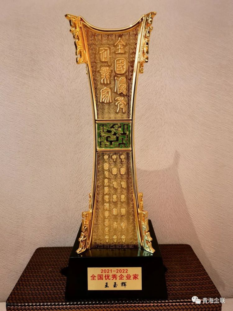 與會領導為青海物產集團黨委書記、董事長王玉輝頒發獎杯