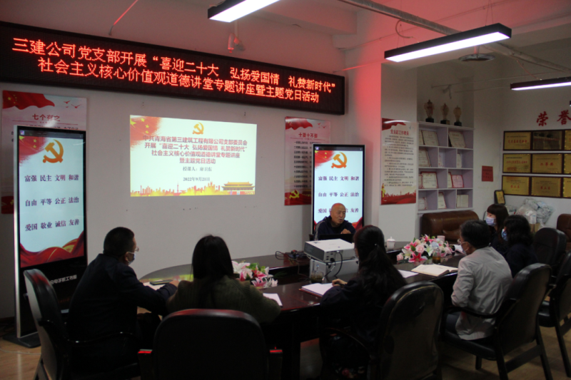 (省三建公司 訊 韓毓、王文杰/文 韓毓/攝 )2022年是黨的二十大召開之年,是落實(shí)省第十四次黨代會精神開局之年。為持續(xù)鞏固拓展黨史學(xué)習(xí)教育成果,加強(qiáng)精神文明建設(shè),深化民族團(tuán)結(jié)進(jìn)步宣傳教育和感恩教育,講好各族民族守望相助、團(tuán)結(jié)奮進(jìn)的國企故事,積極培育和踐行社會主義核心價值觀,9月21日,公司黨支部開展“喜迎二十大 弘揚(yáng)愛國情 禮贊新時代”社會主義核心價值觀道德講堂專題講座暨主題黨日活動。