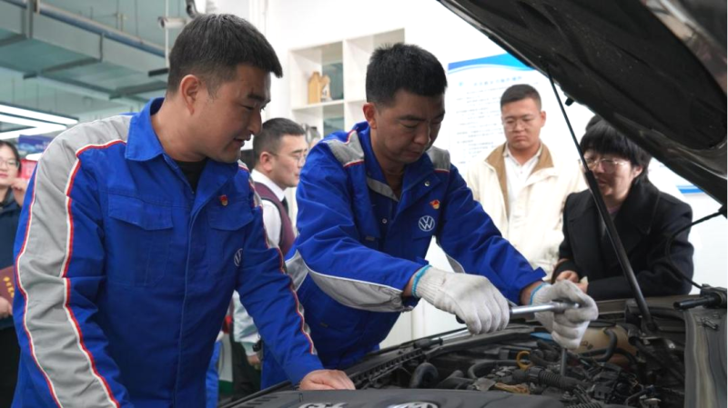 在汽車維修現(xiàn)場,汽貿(mào)公司“售后服務(wù)黨員突擊隊”為交通運輸學院老師的車輛做了全方位、專業(yè)的汽車保養(yǎng)售后服務(wù)。一張“檢查安全維護十二項”的保修單就是公司開展“上門服務(wù)”的“清單”,逐一列上了車輛維修保養(yǎng)的詳細內(nèi)容和對客戶的承諾,還幫助客戶將以后用車中的注意事項做了全面梳理。由于這次服務(wù)對象,都有一定的汽車專業(yè)性知識儲備,所以在邊做維修服務(wù)的同時,工匠們與老師們交流了各品牌車輛的保養(yǎng)、檢測、改裝等方面的內(nèi)容,對今后的工作方向有了新的思考。