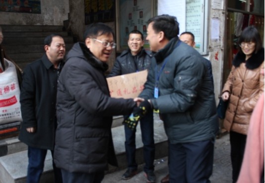 集團(tuán)領(lǐng)導(dǎo)一行先后來到省三建公司汽配市場、三明市場、付家寨、平安分市場、臨空公司施工現(xiàn)場、朝陽物流和機(jī)電市場、配送公司倉庫、現(xiàn)代物流家美家具建材城、長春炭素、康寧公司、工業(yè)投資公司生產(chǎn)車間和項(xiàng)目現(xiàn)場、物產(chǎn)民爆公司倉庫以及物產(chǎn)汽貿(mào)公司上海大眾4S店等生產(chǎn)經(jīng)營第一線,深入了解春節(jié)期間生產(chǎn)經(jīng)營情況、安全生產(chǎn)情況,親切慰問堅守在一線的廣大員工,將慰問品分發(fā)到值守人員手中,帶去集團(tuán)領(lǐng)導(dǎo)暖暖的問候和衷心的祝福。每到一處,集團(tuán)領(lǐng)導(dǎo)同一線員工一一握手,詳細(xì)詢問節(jié)日期間值班和職工生活安排情況,同時對堅守崗位的職工給予充分的肯定和高度的贊揚(yáng),為他們在節(jié)日期間舍小家為大家的奉獻(xiàn)精神表示衷心的感謝。王玉輝總經(jīng)理情深意長地說:正是因?yàn)橛辛艘痪€員工的勤奮和努力,才確保了集團(tuán)系統(tǒng)生產(chǎn)經(jīng)營的平穩(wěn)運(yùn)行,感謝大家!同時要求所屬公司領(lǐng)導(dǎo)春節(jié)期間一定要安排好職工的生產(chǎn)生活,并做好各項(xiàng)安全防范工作。